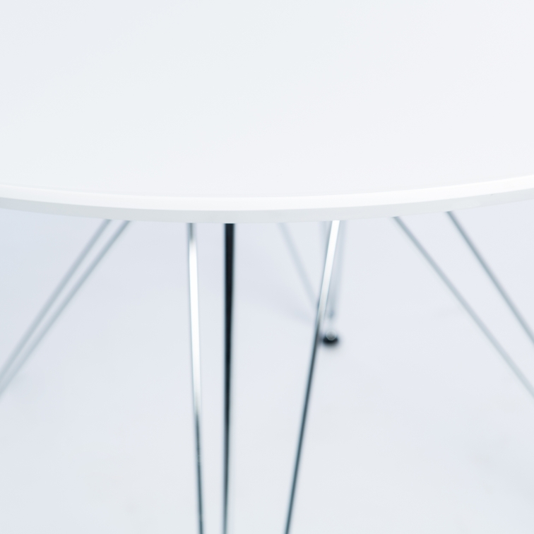 De designtafel Eames Tower 100 cm is legendarisch. Geïnspireerd door de beroemde Eames-tafel, werd het originele ontwerp gebruikt. Deze prachtige tafel is perfect voor in je keuken of eetkamer. Het onderstel is gemaakt van verchroomd staal. Het ronde blad van hoogwaardig wit gelakt MDF. De Eames Table past zich perfect aan uw familiemaaltijden en andere aan. Het biedt plaats aan 3-4 personen.