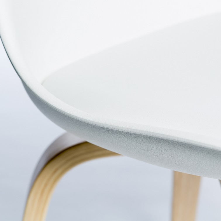 - Polypropyleen zitting met kunstlederen kussen.
